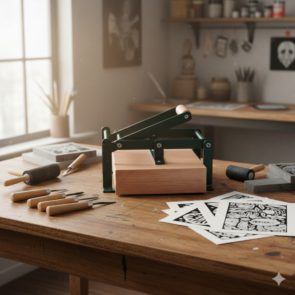 Create professional-quality linocut prints right from your studio or home workspace.